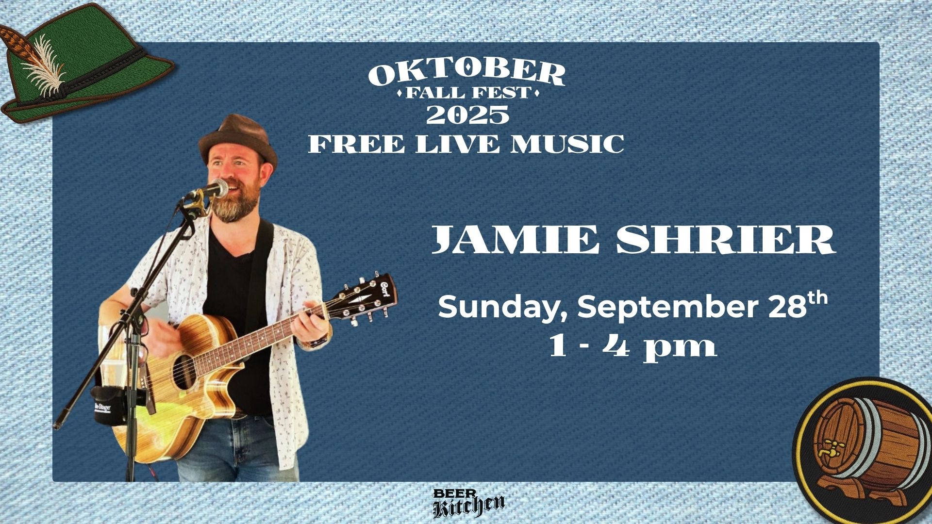 Join us for some good food, drinks, and amazing live music brought to you by Jamie Shrier!