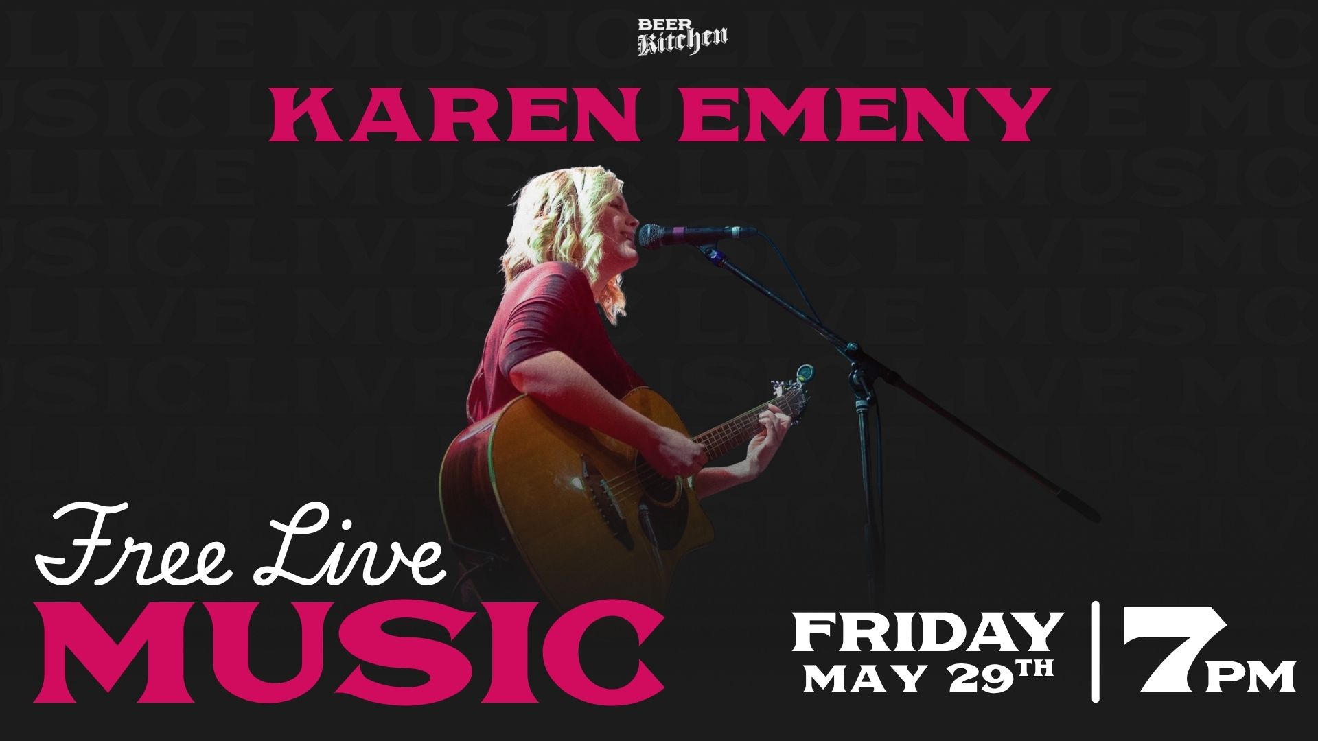 Join us for some good food, drinks, and amazing live music brought to you by Karen Emeny!
