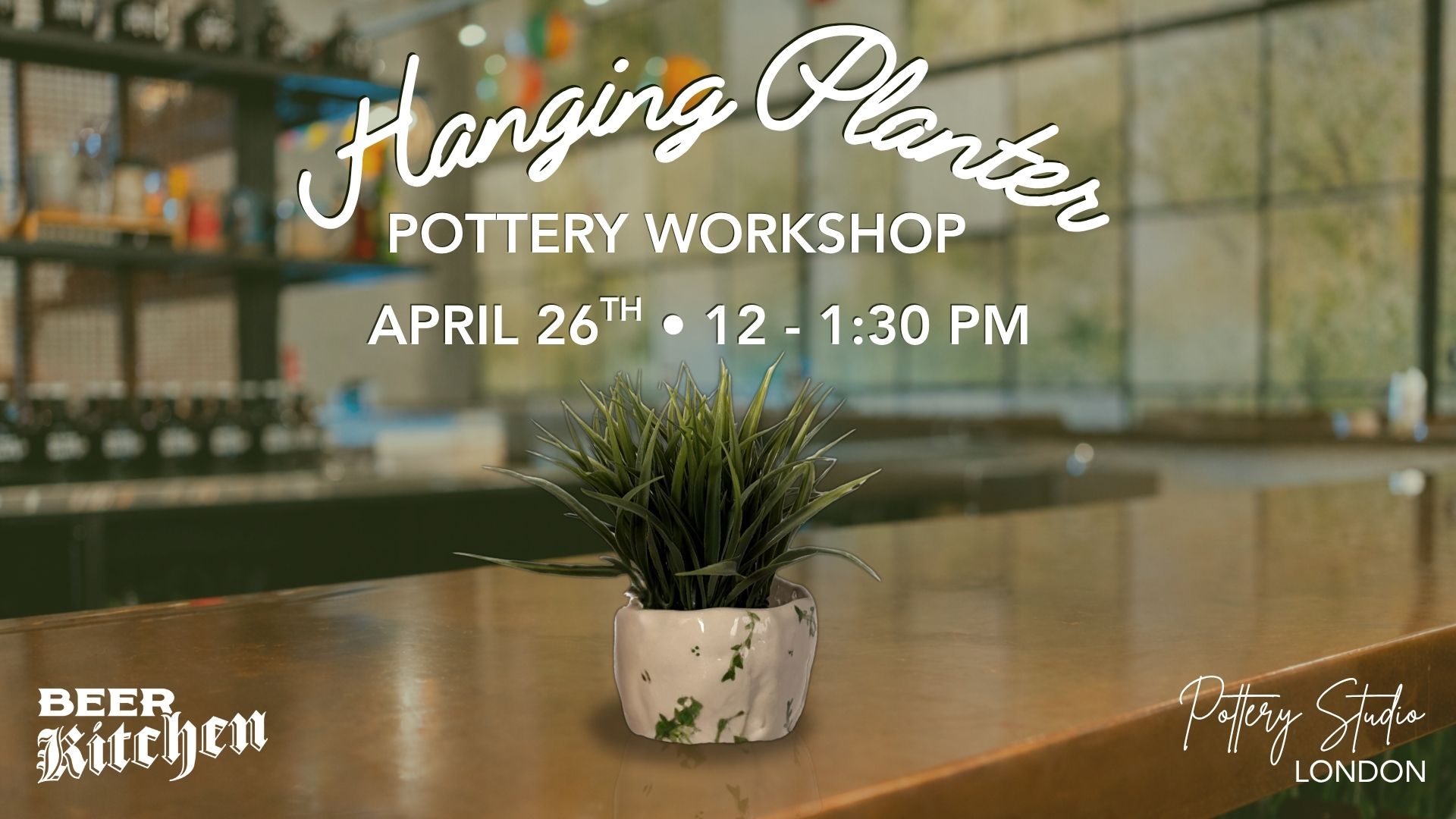 Join us on April 26th from 12 – 1:30 pm for another pottery workshop with Pottery Studio London. This time we’re making Hanging Planters!