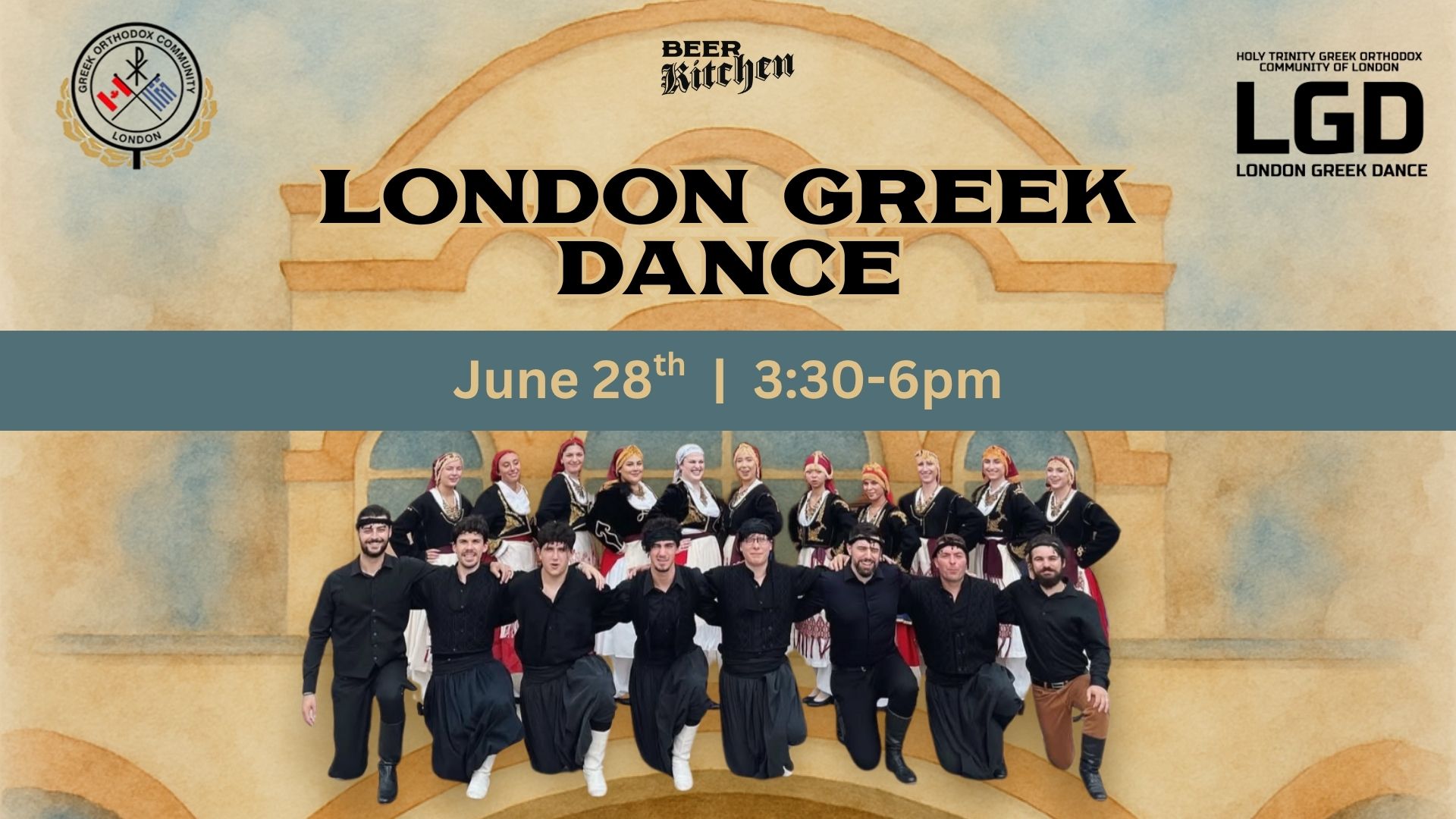 Join us for a FREE LIVE performance of London Greek Dance from 3:30 – 6 pm!